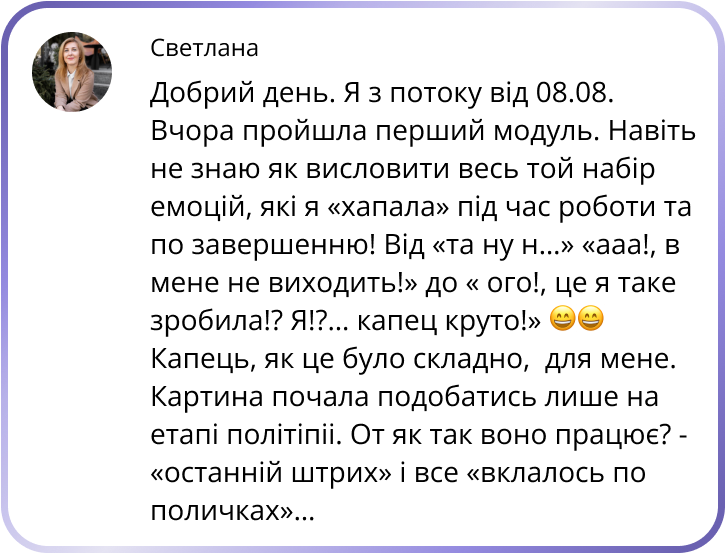 Отримала заряд наснаги та можеш досягати більшого